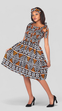 Flounce Dress/Shoulder Straps /African Anarka Print KVZ66