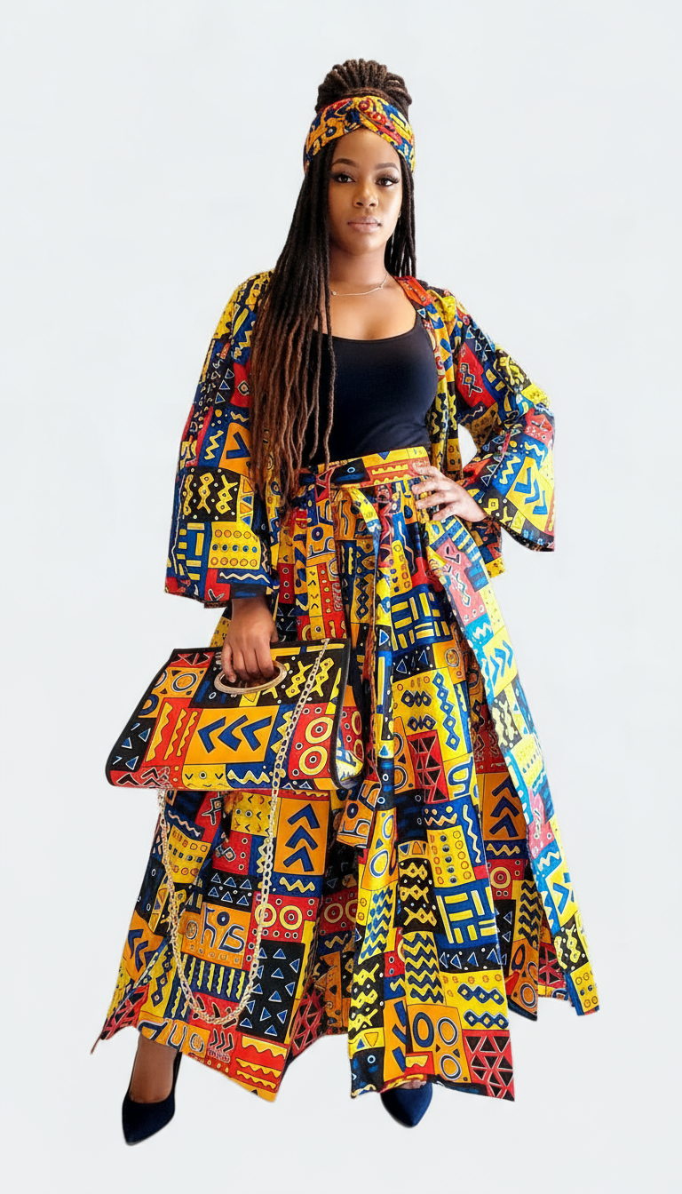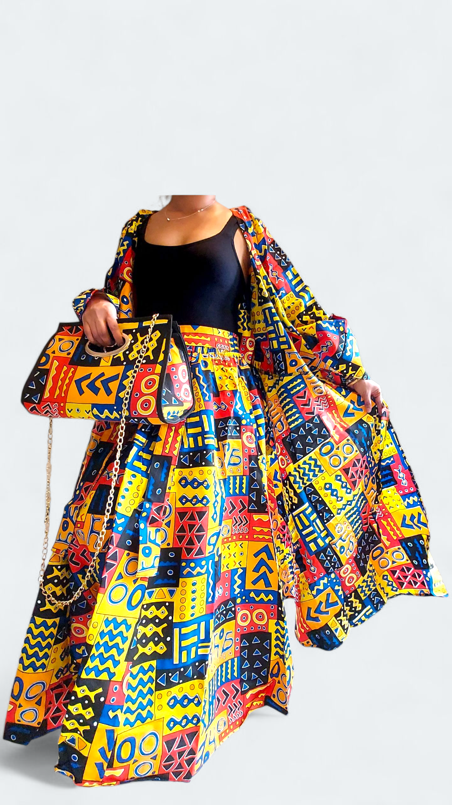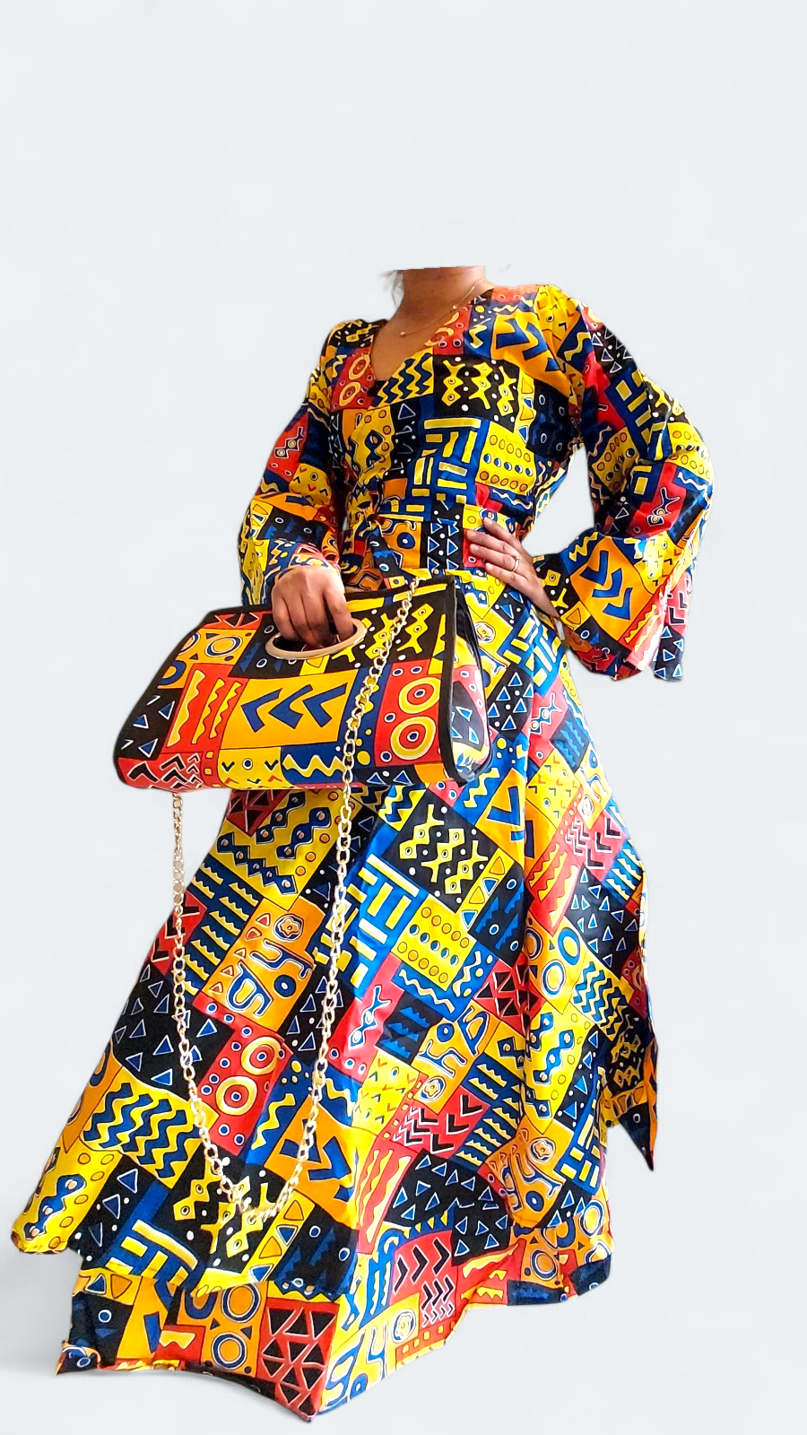 3pcs Set Maxi Skirt Pocketbook wrap Dress 746 D - Set (dress, skirt, pocketbook)