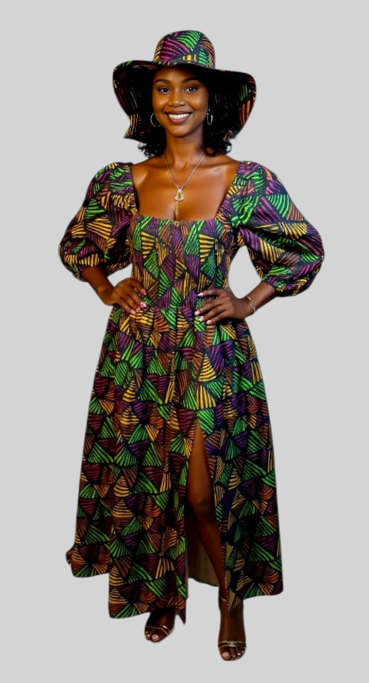 Maxi Slit Dress with Hat & Scarf Set SD01 Multi