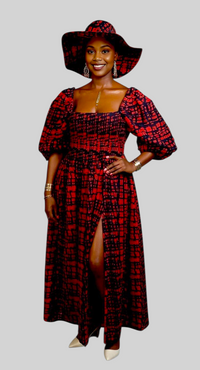 Maxi Slit Dress with Hat & Scarf Set SD01 Red