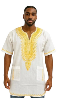 M031 Unisex/ Men/women kurta Embroidery Top - White - Large