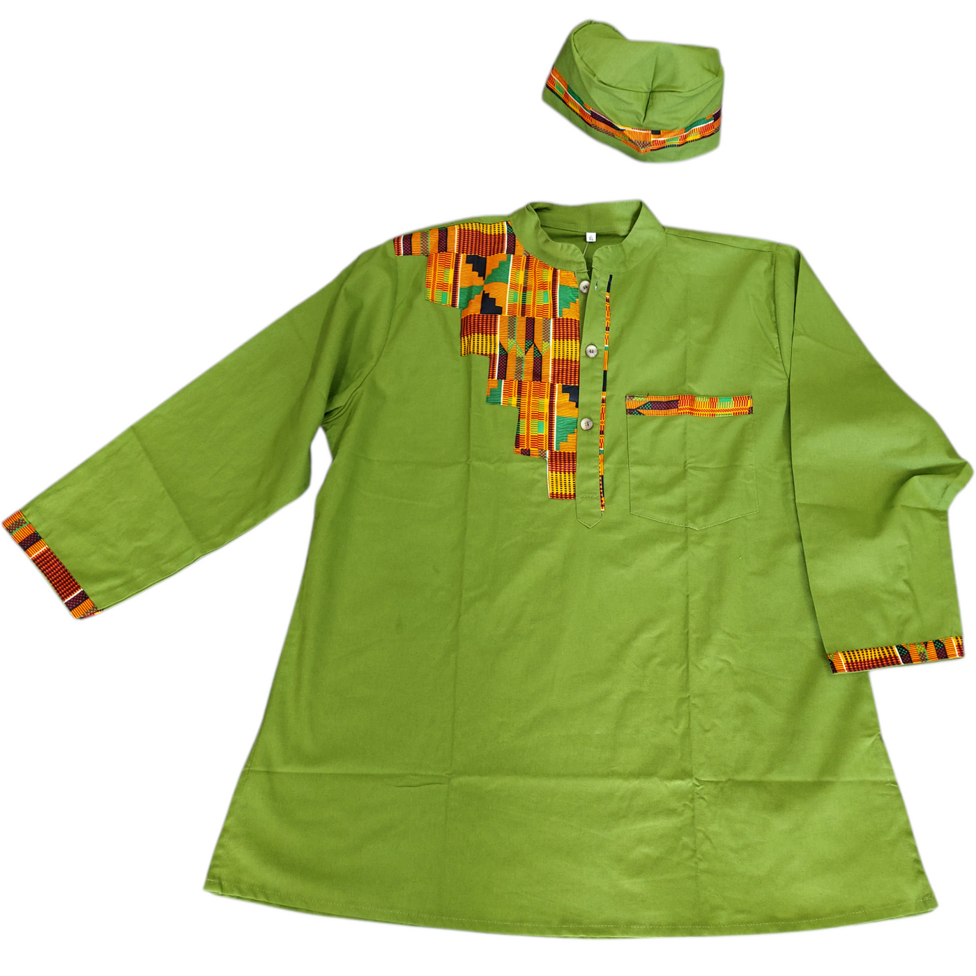 Crafted from 100% breathable cotton, this set offers all-day comfort while maintaining a sharp, polished look. The tunic shirt and pants are beautifully finished with authentic Kente accents, adding bold color and traditional African-inspired detail.