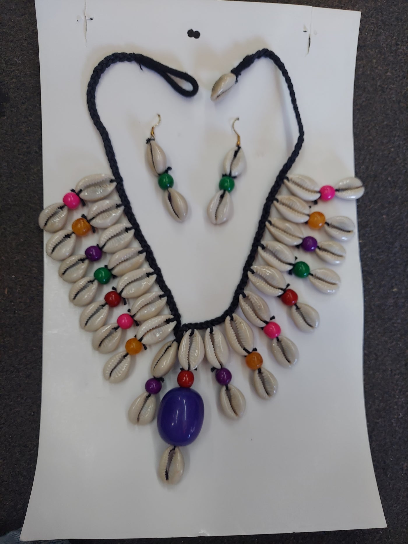 Cowrie Shell Necklace/ Earring Set- Multi - Multi