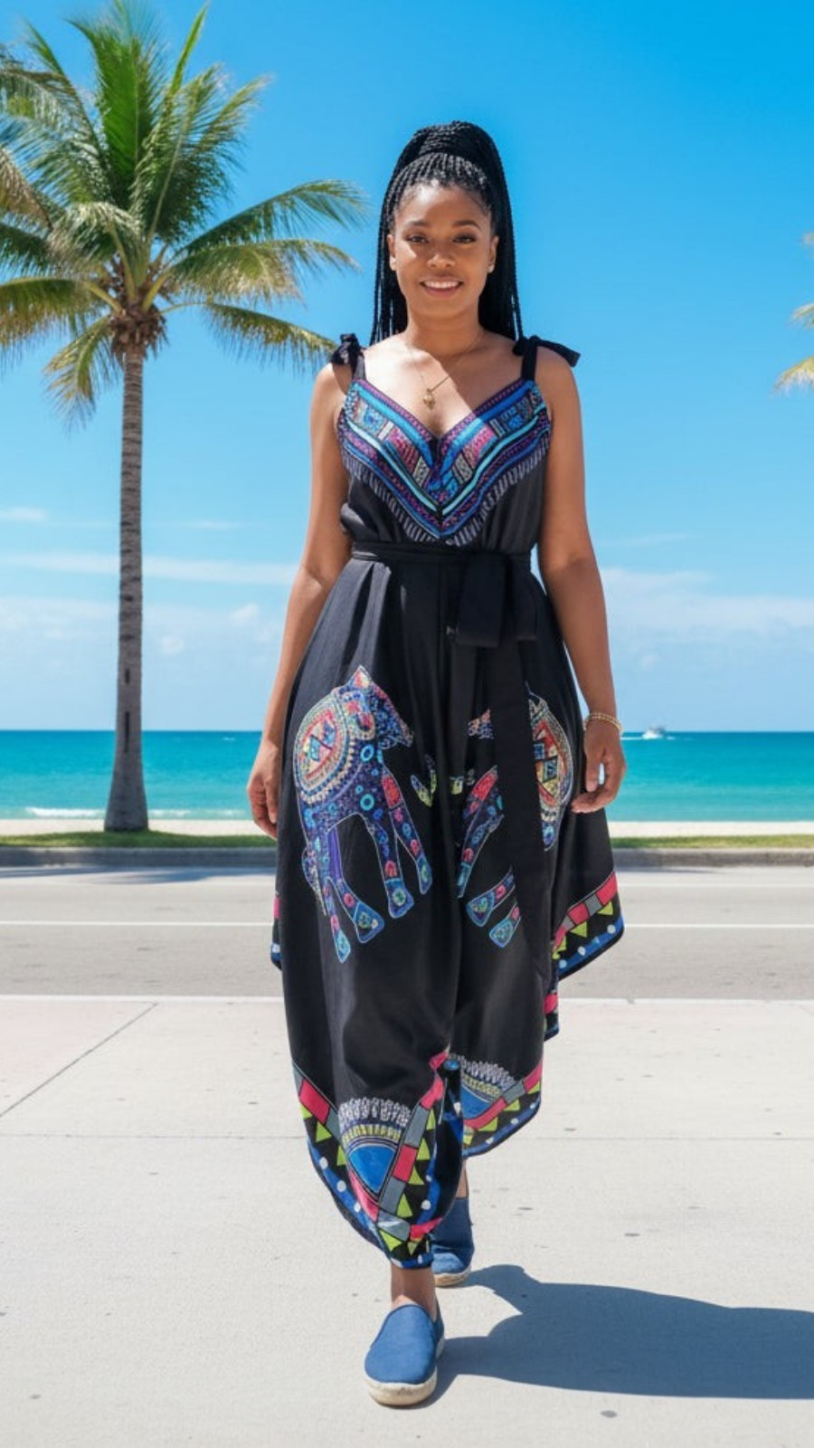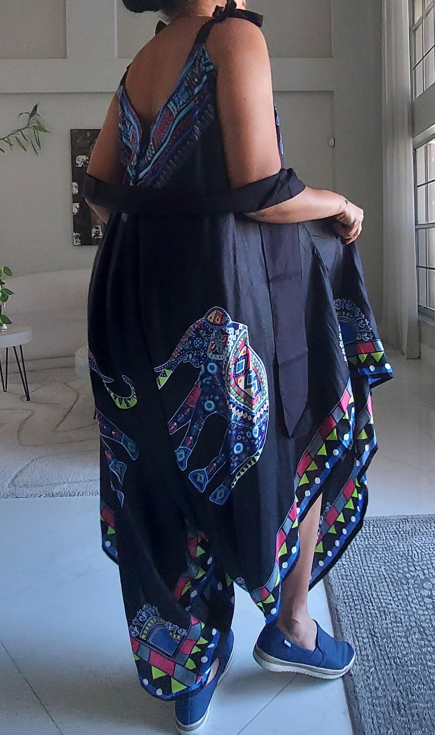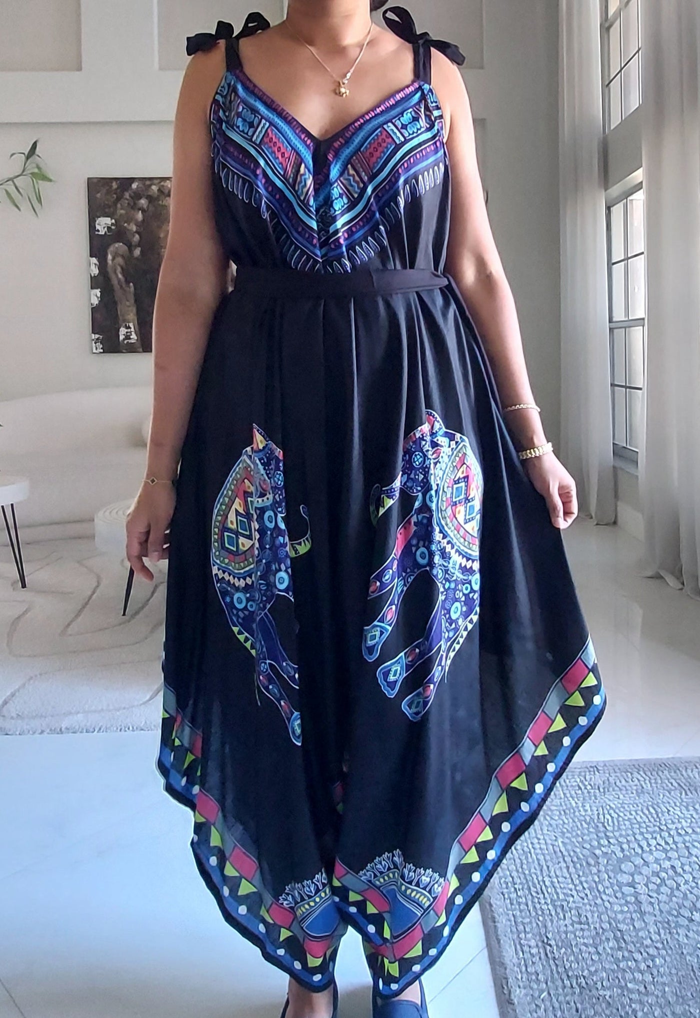 Harem Romper / Jumper Elephant Print Blue -009 - Black / Blue Elephant