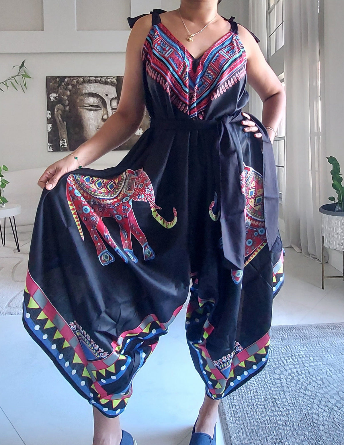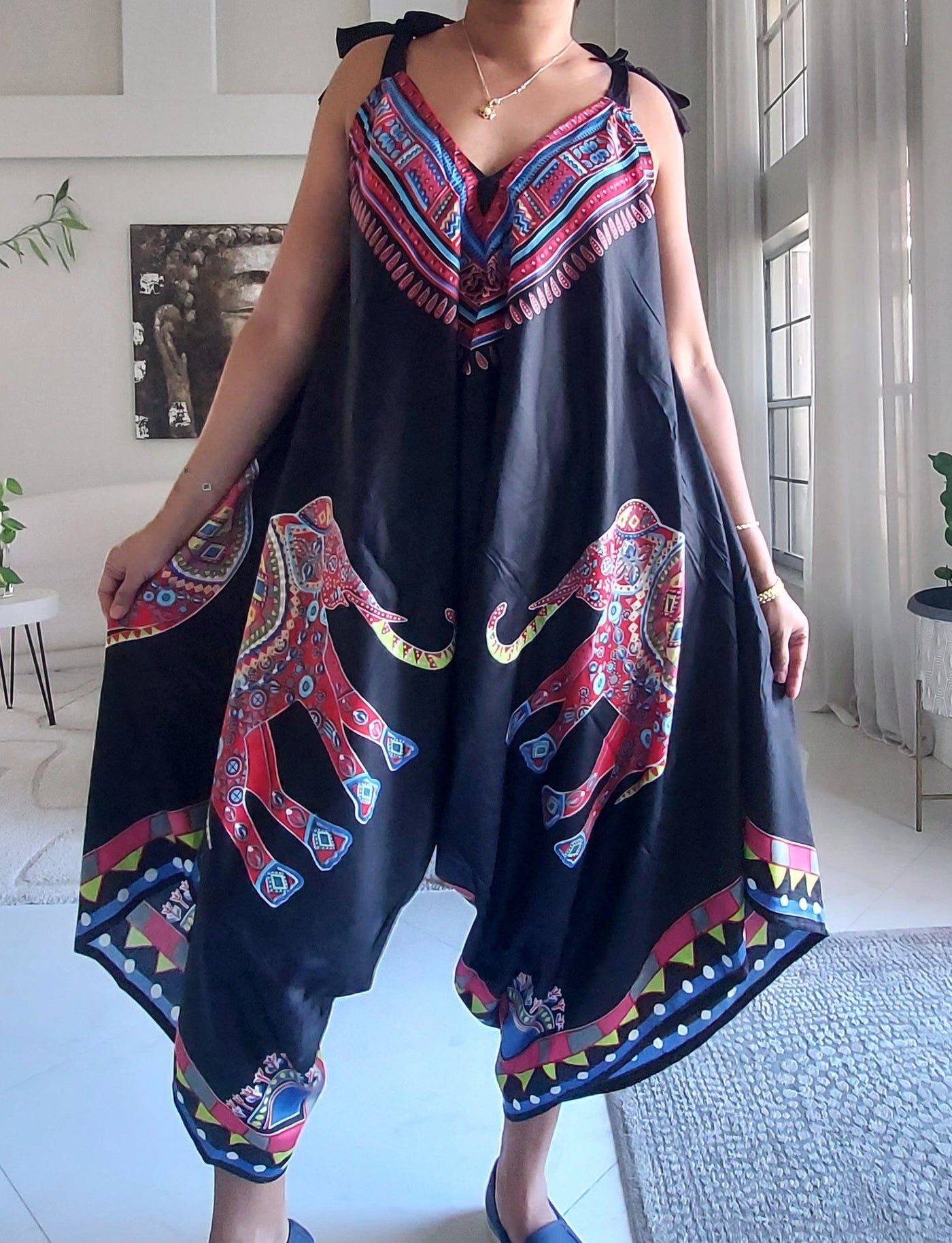 Harem Romper / Jumper Elephant Print Red -009 - Black / Red Elephant