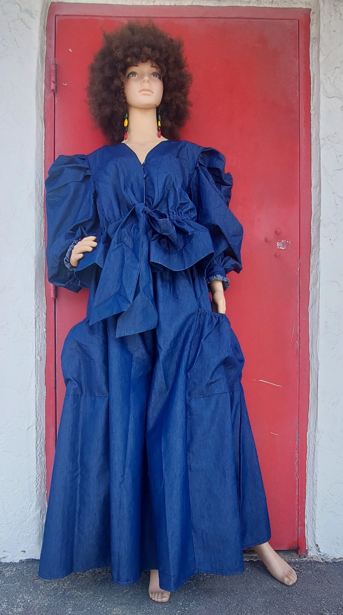 Women Set - Denim Palazzo Pant & Top - Indigo Blue